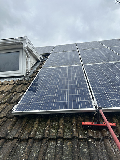Solar Panels are cleaned using the Reach & Wash system, fitted with a soft solar panel brush.
